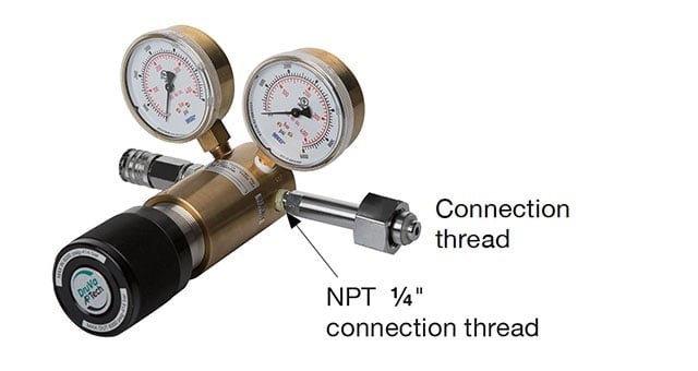 If the right thread cannot be defined, you can order a Pressure Regulator without a connection adaptor. In this case, the right connection adaptor must of course be fitted at the ¼ NPT thread before use. Order No. 1028343-000
